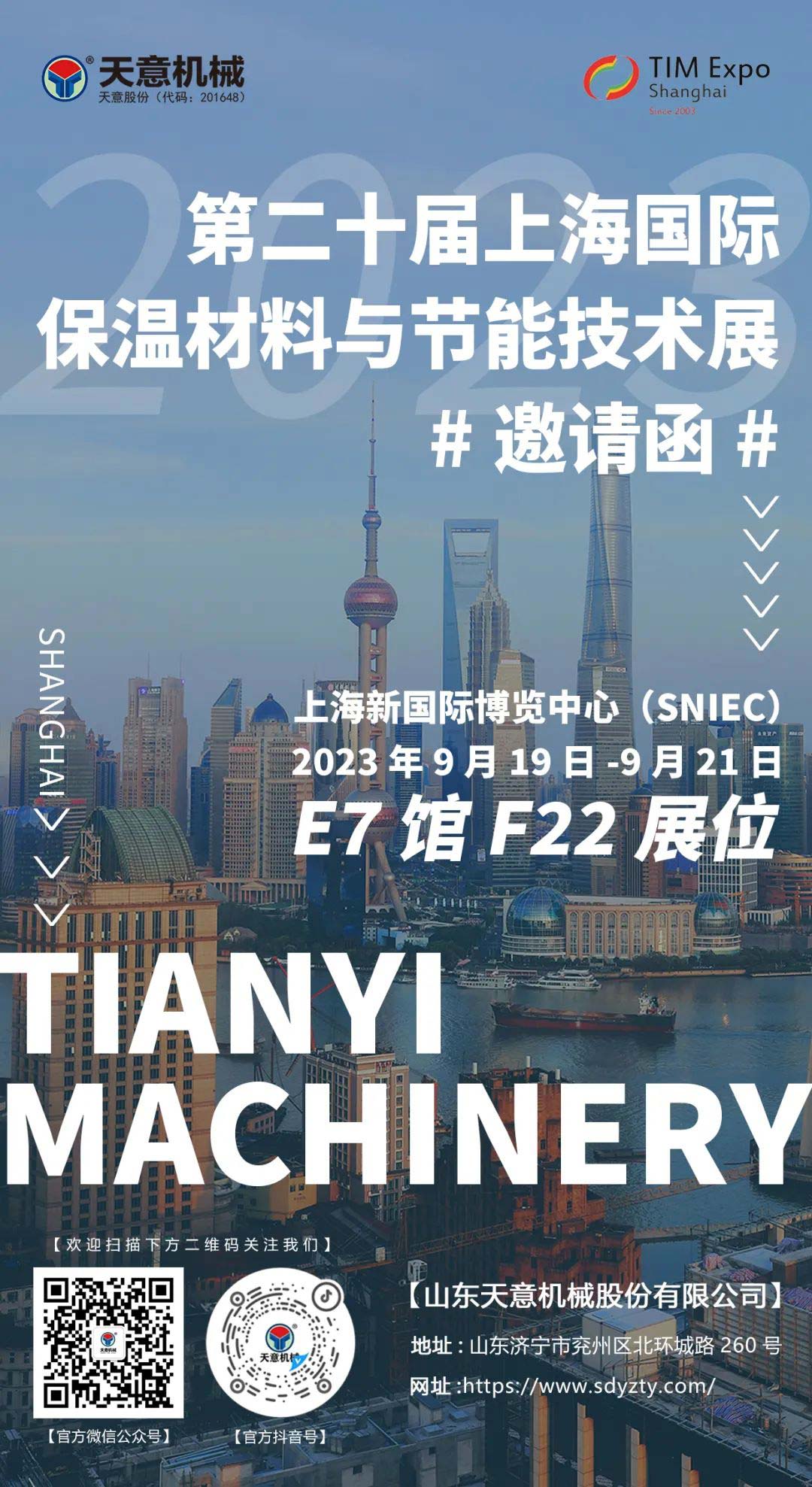 展會(huì)預(yù)告丨天意機(jī)械即將亮相第二十屆上海國(guó)際保溫材料與節(jié)能技術(shù)展