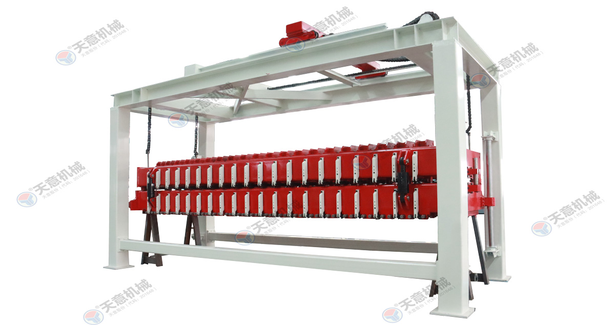 坯體經(jīng)過發(fā)泡靜停達(dá)到切割要求后模具轉(zhuǎn)移至切割區(qū),由翻轉(zhuǎn)機(jī)分離模具并將坯體翻轉(zhuǎn)90度放到蒸養(yǎng)小車上,然后經(jīng)過切割工序?qū)ε黧w進(jìn)行側(cè)面切割刨槽及水平和垂直分割,使之達(dá)到外觀尺寸要求,切割工作可以機(jī)械化進(jìn)行也可人工操作,這道工序直接決定ALC板材的制品外觀質(zhì)量以及某些內(nèi)在質(zhì)量。