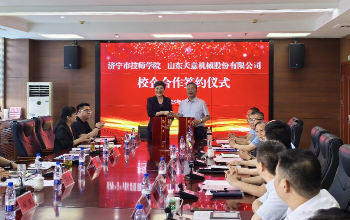 劉洪彬董事長發(fā)表了講話,他表示,企業(yè)的競爭,本質(zhì)是人才的競爭。在企業(yè)的發(fā)展中,技能型人才始終是我們最寶貴的財富。通過加強(qiáng)產(chǎn)教融合建設(shè),濟(jì)寧市技工院校為我們公司培養(yǎng)了許多專業(yè)過硬的技能型人才。退役軍人們,在部隊中鍛造的紀(jì)律意識、抗壓能力和團(tuán)隊協(xié)作精神,正是現(xiàn)代企業(yè)所急需的人才。許多退役軍人同事已在設(shè)備調(diào)試、售后服務(wù)、生產(chǎn)管理等關(guān)鍵崗位上,成長為企業(yè)的中堅力量。作為扎根濟(jì)寧20年的本土企業(yè),山東天意機(jī)械股份有限公司成立于1998年,是以裝配式建筑裝備研發(fā)、制造為主導(dǎo),同時涵蓋鋁合金型材生產(chǎn)、機(jī)器人制造、智慧物流、新能源等領(lǐng)域的國際化、多元化、創(chuàng)新型企業(yè)集團(tuán)。歡迎廣大學(xué)子和退役軍人到天意,共創(chuàng)美好未來! 隨后,劉洪彬董事長與濟(jì)寧市技師學(xué)院進(jìn)行了校企合作簽約儀式。