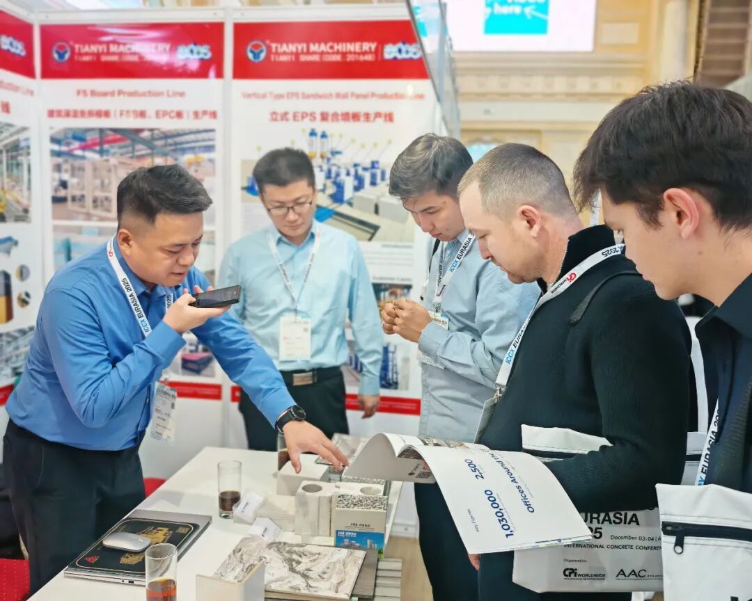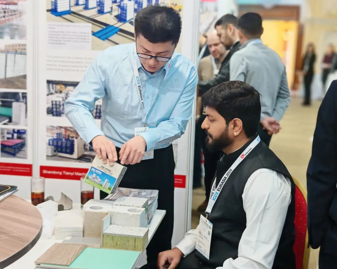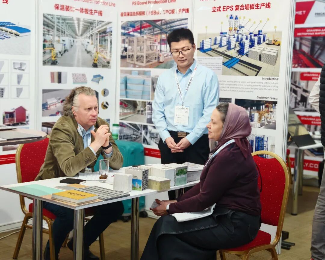 在裝配式建筑裝備方面,天意集團展示了PC生產(chǎn)線、墻板裝備和保溫裝飾一體板生產(chǎn)線。PC生產(chǎn)線自動化流程設(shè)計,減少人工依賴,契合當?shù)貏趧恿寄芩讲灰坏默F(xiàn)狀,有助于提升施工穩(wěn)定性;墻板裝備實現(xiàn)工業(yè)廢渣再利用,降低建材成本,符合環(huán)保政策要求;保溫裝飾一體板生產(chǎn)線可生產(chǎn)集多種功能于一體的新型墻體材料,采用模塊化設(shè)計,能根據(jù)客戶需求靈活配置不同飾面工藝,滿足中亞地區(qū)多樣化建筑風(fēng)格需求。