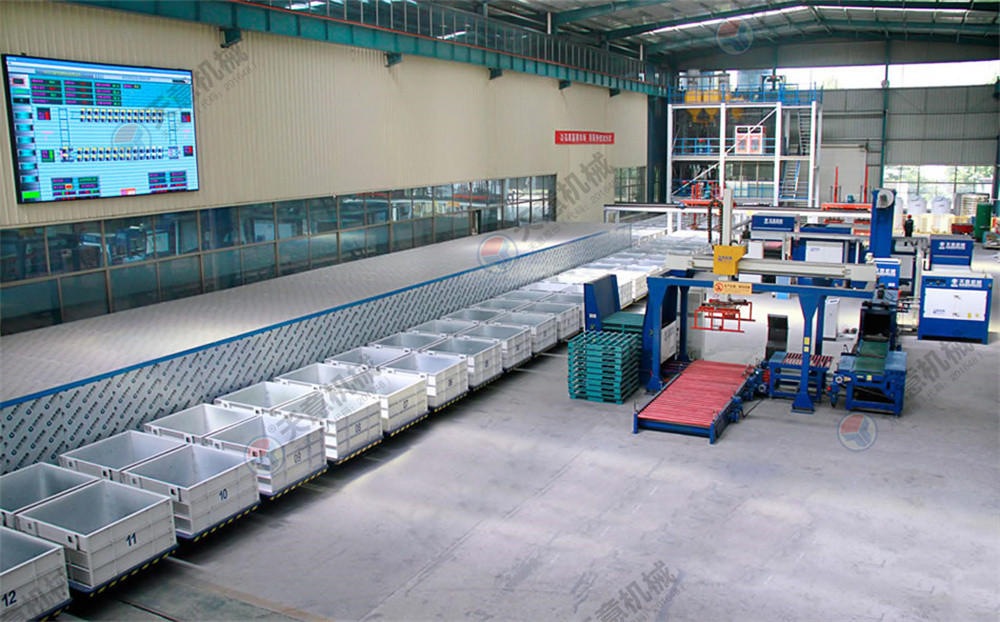 水泥發(fā)泡保溫板生產(chǎn)線是我公司順應(yīng)市場需求新研發(fā)的成套設(shè)備。該生產(chǎn)線將工藝流程劃分為攪拌系統(tǒng)、循環(huán)澆注系統(tǒng)、脫模系統(tǒng)、切割系統(tǒng)、包裝系統(tǒng)、儲存系統(tǒng)、廢料破碎回收系統(tǒng),全套生產(chǎn)線可實(shí)現(xiàn)班產(chǎn)量400—600m3,全部利用自動控制生產(chǎn)流程,所需人工9—12人,大大降低生產(chǎn)成本.